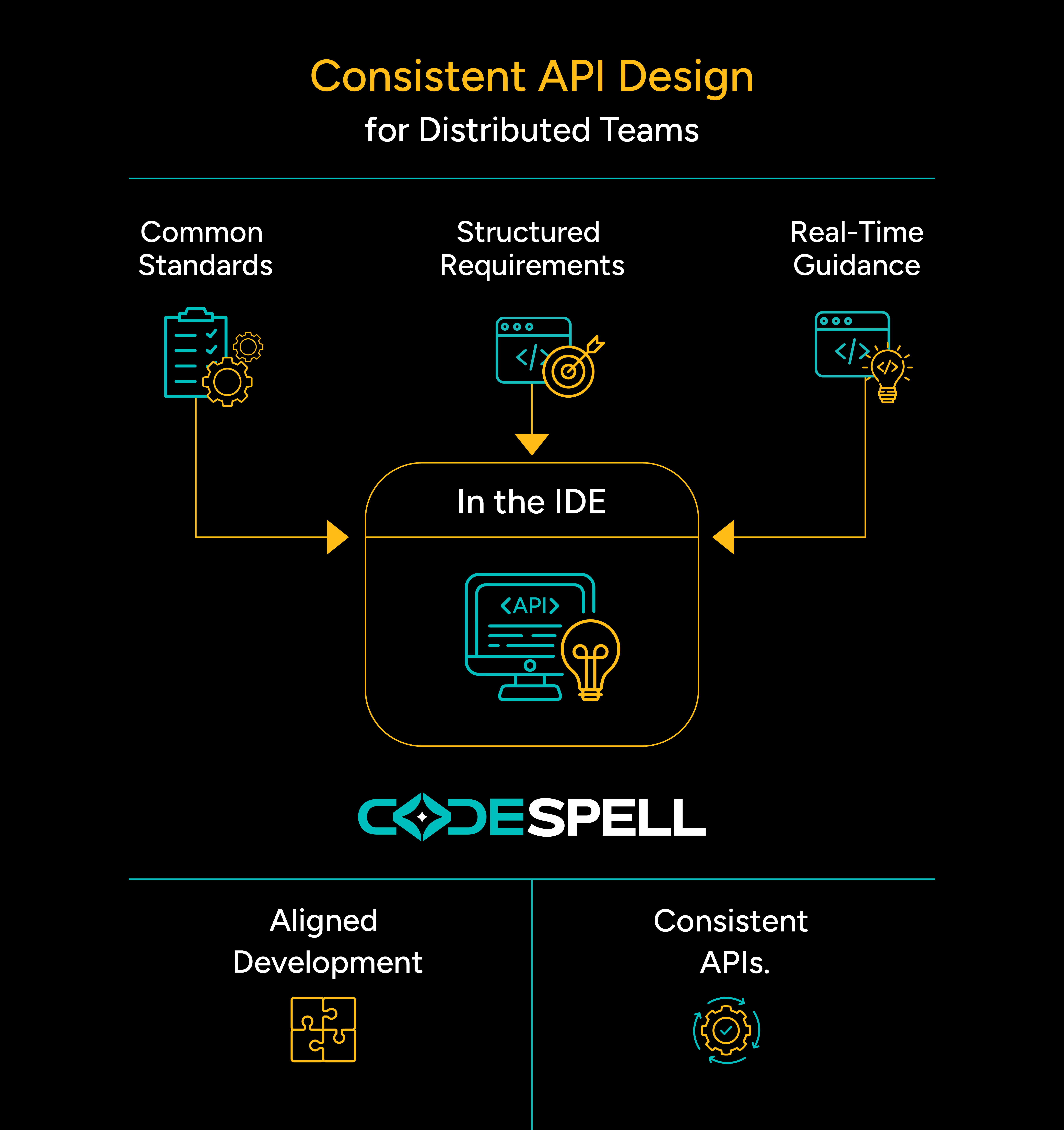 In distributed engineering teams, API inconsistency leads to integration issues, slower development, and growing technical debt. Documentation and reviews alone are not enough to prevent drift at scale. CodeSpell helps teams maintain consistent API design by embedding shared standards, structured requirements, and real-time guidance directly into the development workflow.